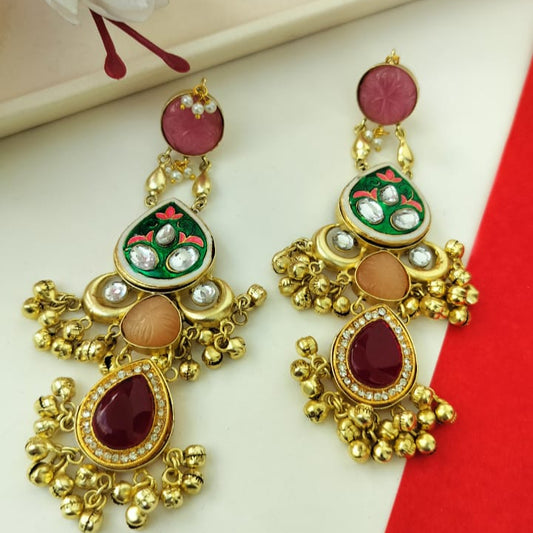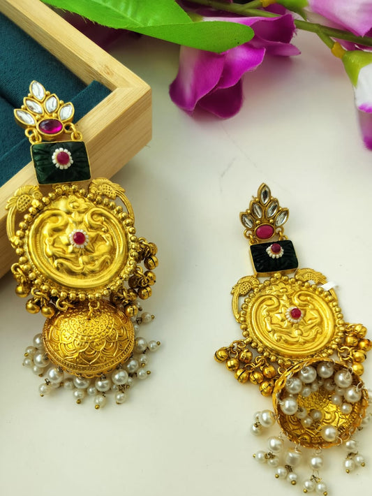 Rivaah Handcrafted gold plated earrings (Maroon and green)