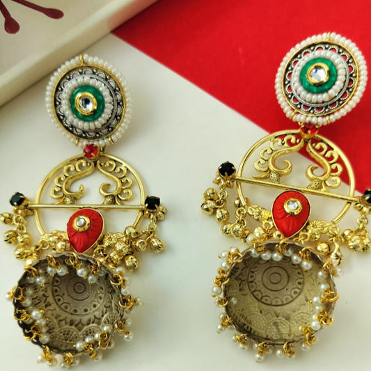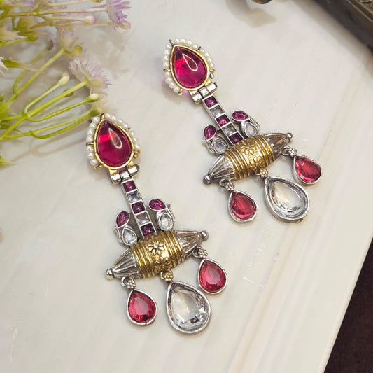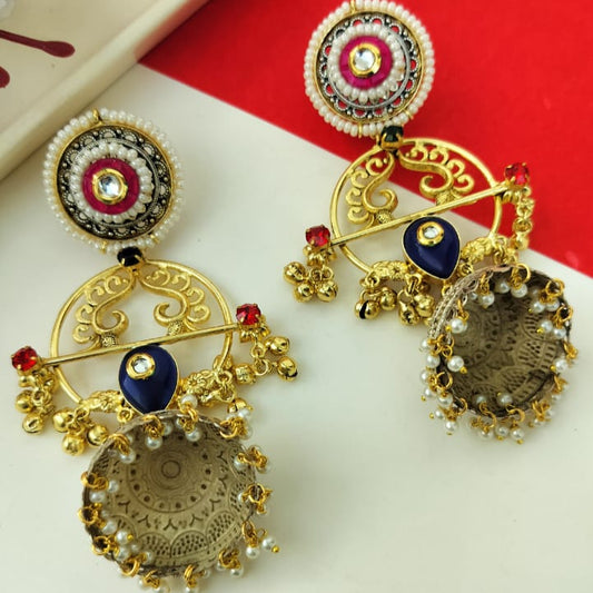 Nihira Gold Plated Dual tone earrings (Red and blue)
