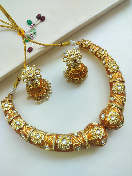 Jaipuri Meenakari Hasli Set-Gold & Amber Enamel