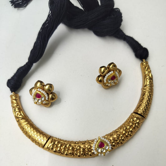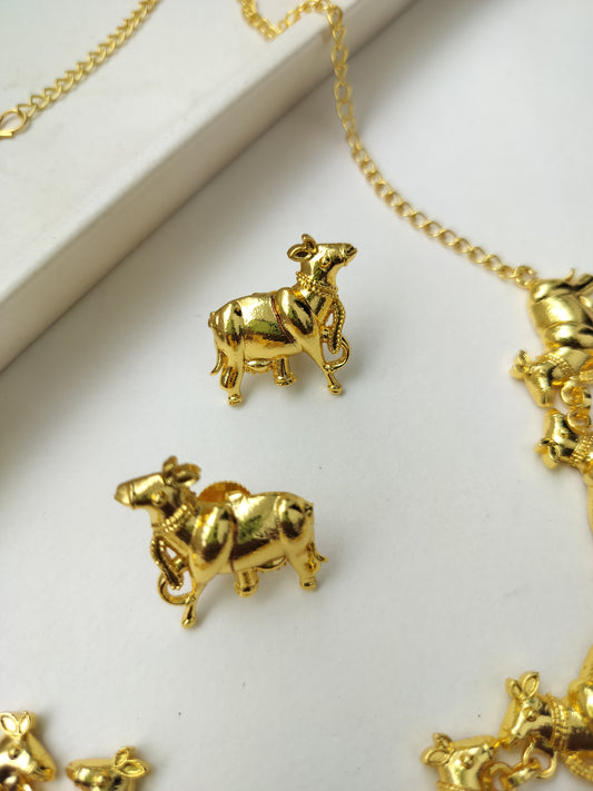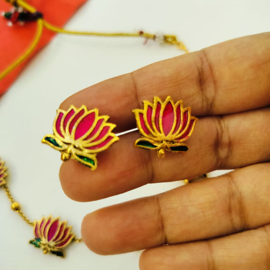 Lotus Charm Necklace & Earring Set – Minimal Gold-Toned