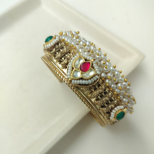 Handcrafted Kundan Pearl Kada / Bangle – Gold Polish