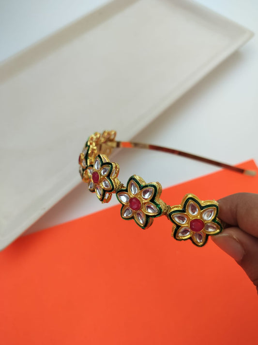 Parineeti Style Floral Kundan Studded Hairband (Pink& Green)