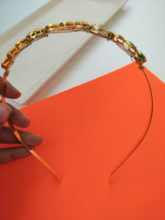 Parineeti Style sleek Kundan Studded Hairband (Pink& Green)