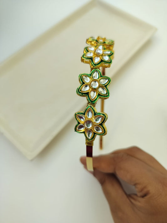 Parineeti Style Floral Kundan Studded Hairband (Golden & Green)