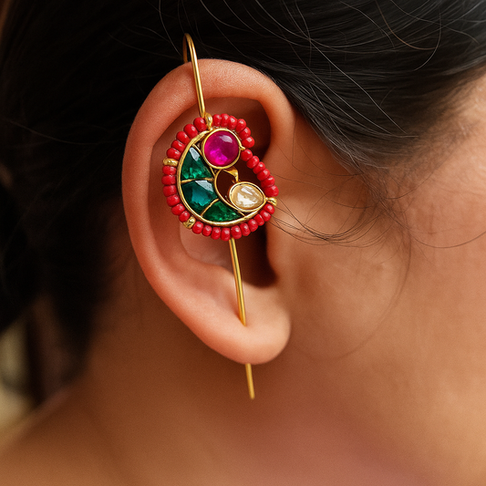 Ahalya Kundan Earcuffs Earrings- Set of 2