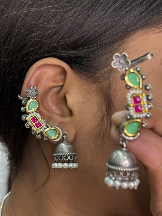 Silver Lookalike Oxidised Earcuff - Set of 2