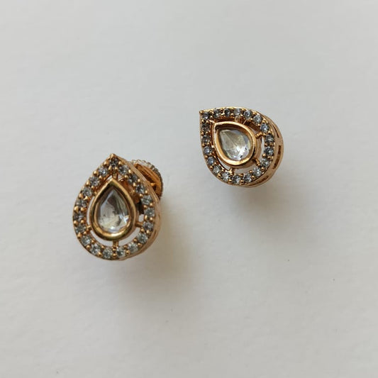 Dhruvi Kundan Beads Necklace Set (Light peach color)